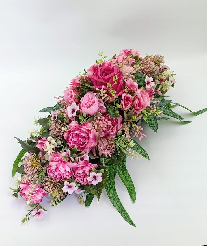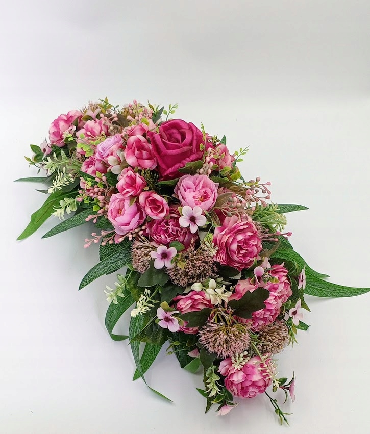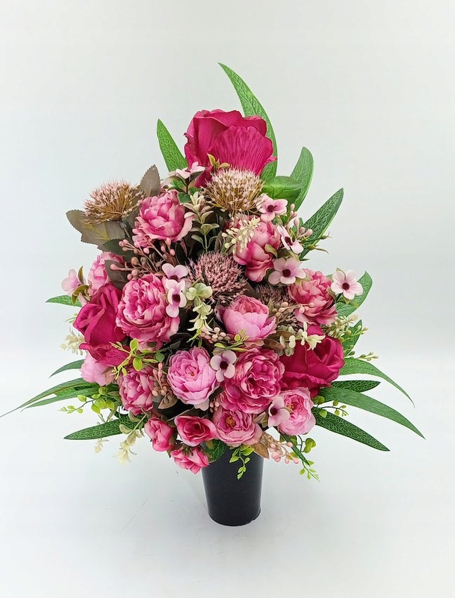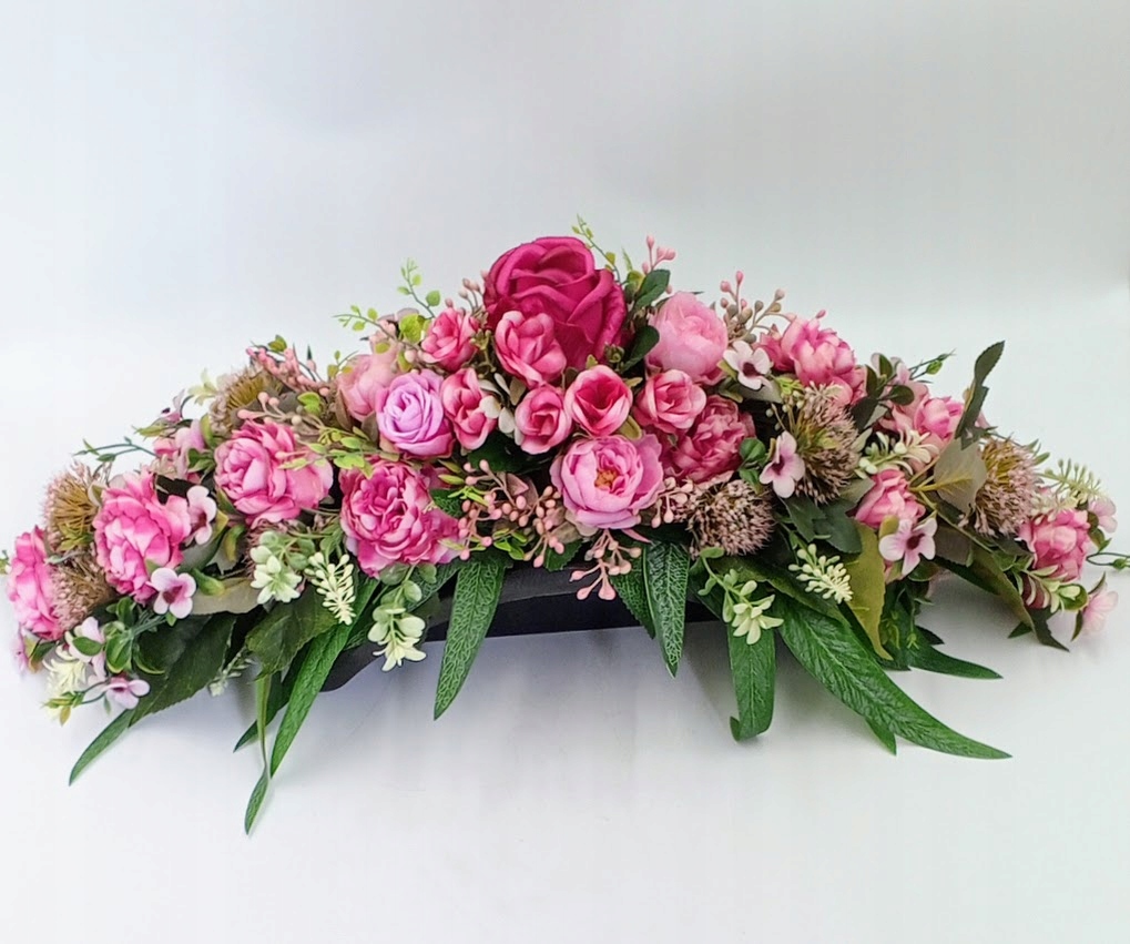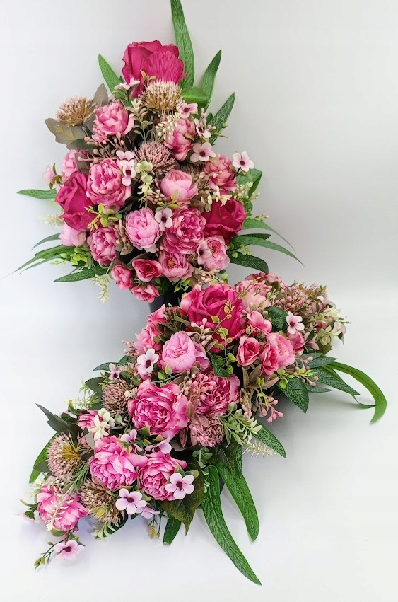 Stroiki oraz wazony zostały wykonane z dbałością o detale. Każdy zestaw zawiera kompozycje kwiatowe z wysokiej jakości kwiatów sztucznych, w tym zestawie: róża w otoczeniu soczystej zieleni i licznych dodatków.