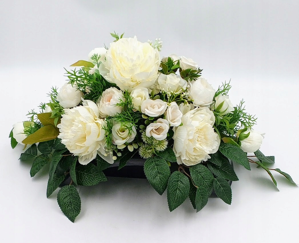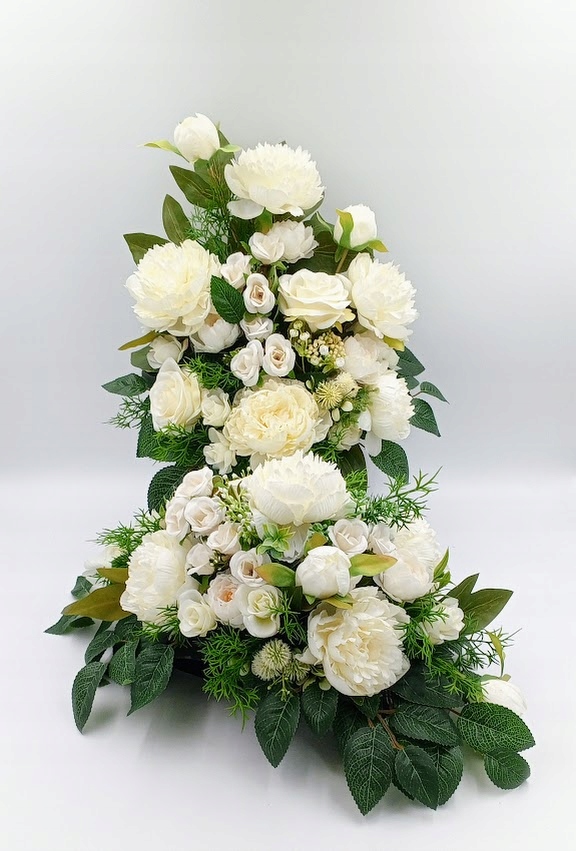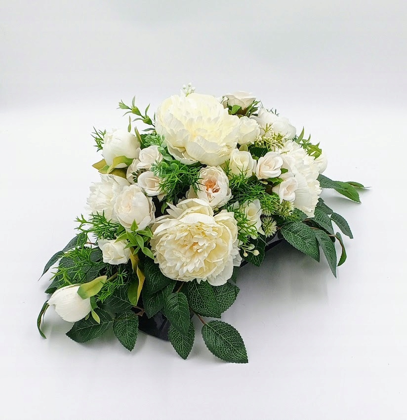Stroiki oraz wazony zostały wykonane z dbałością o detale. Każdy zestaw zawiera kompozycje kwiatowe z wysokiej jakości kwiatów sztucznych, w tym zestawie: piwonia i róża w otoczeniu soczystej zieleni i licznych dodatków.
